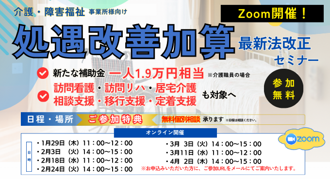 【Zoom開催】処遇改善加算最新法改正セミナー「介護分野の職員の賃上げ・職場環境改善支援事業」について解説