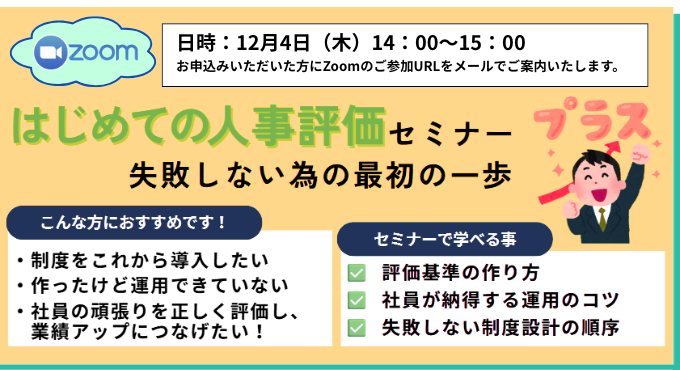 12/4【Zoom開催】「はじめての人事評価セミナー」
